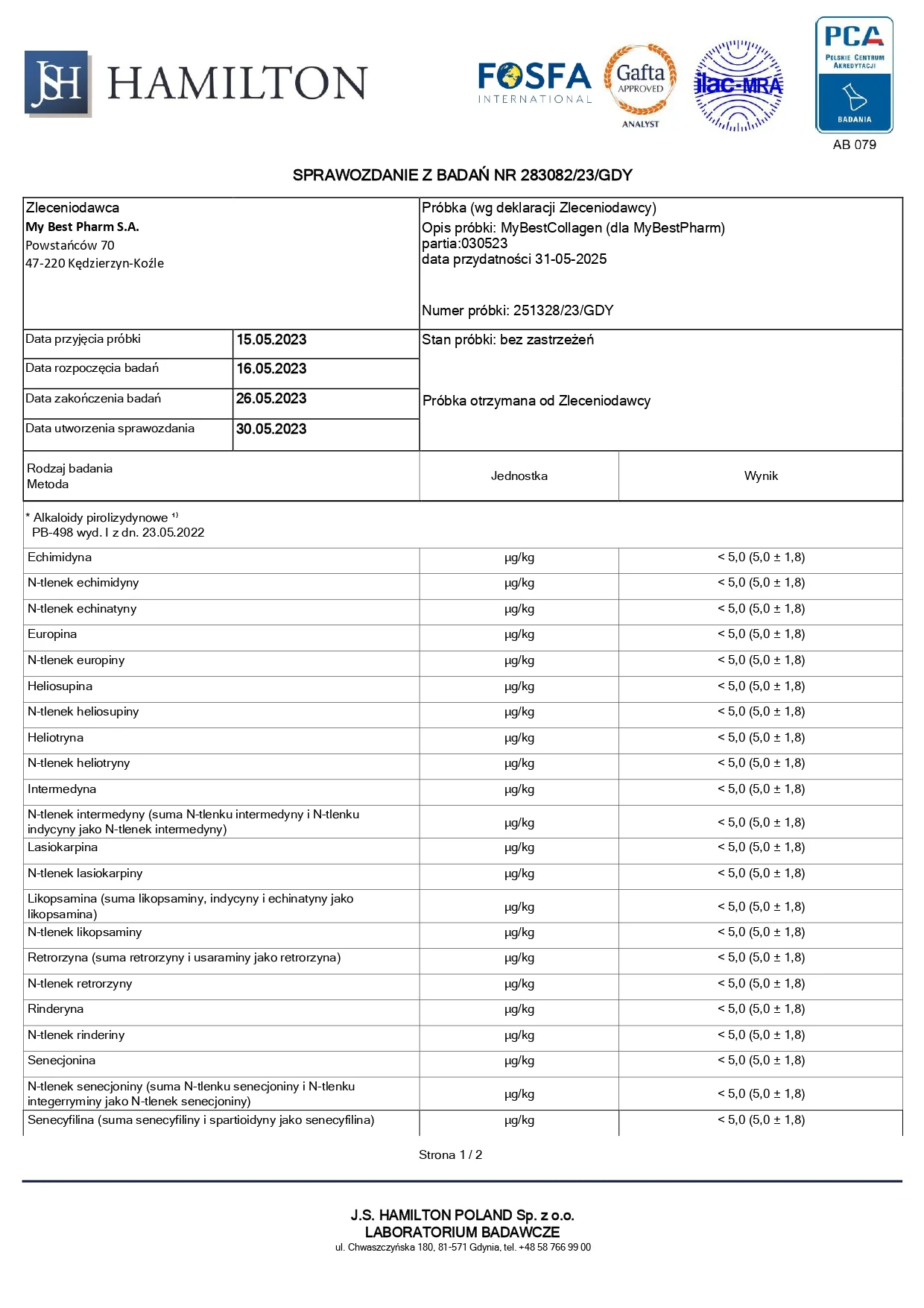 Nie boimy się tak twierdzić, bo mamy na to twarde dowody. Zlecamy nieobowiązkowe badania w akredytowanym laboratorium Hamilton Poland, gdzie nasze preparaty poddawane są ślepej próbie, która skupia się na efektach działania i skuteczności preparatu bez informowania, kto jest jego producentem. Rezultaty potwierdzają, że suplementy MyBestPharm dają najlepsze na rynku efekty.