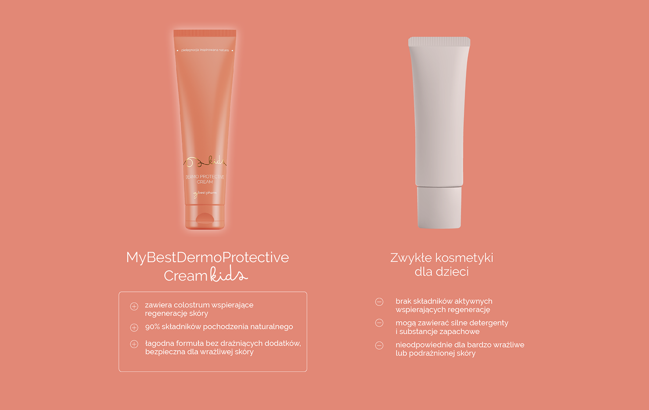 Tak, MyBestProtectiveCream Kids został stworzony z myślą o najbardziej wymagającej i wrażliwej skórze dzieci. Zawiera łagodne składniki, jest testowany dermatologicznie i wzbogacony o colostrum – składnik wspierający regenerację i naturalną barierę ochronną skóry.