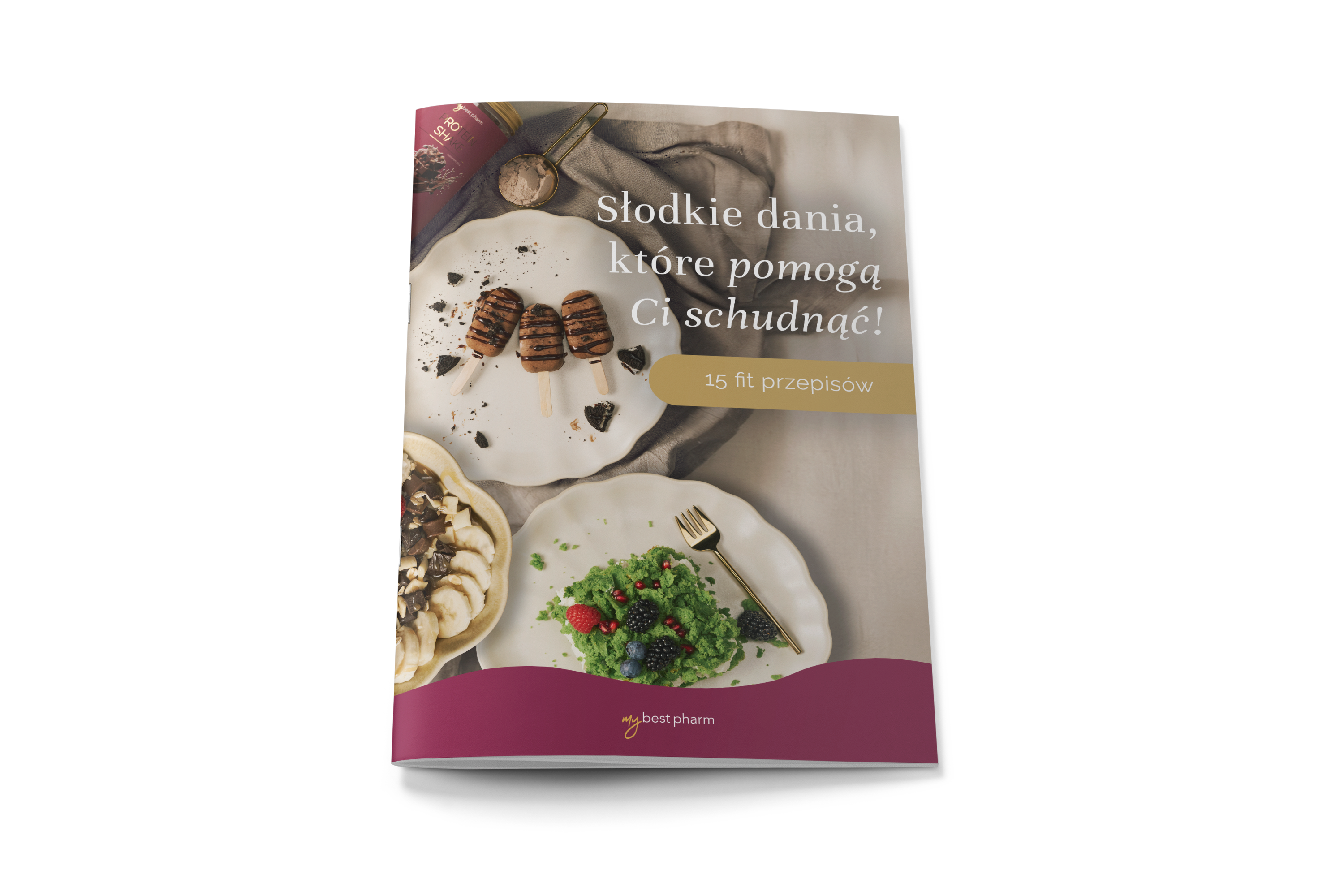 Nasz e-book “Słodkie dania, które pomogą Ci schudnąć. 15 fit przepisów” zawiera: